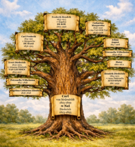 Om een speciale reden zijn deze talrijke kinderen buiten beschouwing gelaten. De ouders hebben hen namelijk doop- en roepnamen gegeven volgens strikte regels van vernoeming: binnen de familie eerst van vader dan van moeder afgewisseld, daarna eerder grootouders dan ooms en tantes, plus voorrang voor de overledenen. Zodoende dragen alle eerstgeboren zonen één enkele voornaam: Carl. En zo heten veel dochters Petronella Wilhelmina. Indien al die namen steeds genoemd zouden zijn, dan was een draaikolk van namen ontstaan. Een meesterverteller als Gabriel Garcia Marquez weet daar wel raad mee in “Honderd jaar eenzaamheid”, maar in een kroniek als deze moeten de familieverbanden helder zijn. Nu de oudste van al die kinderen bij de eeuwwisseling bijna 17 jaar oud is, beginnen hun levensverhalen zo veel kleur te krijgen, dat het hoog tijd voor hun behandeling is.