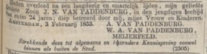 Kort daarop verschijnt een rouwadvertentie in de krant. Johannes Nicolaas van Paddenburg, oudste zoon van halfzus Wilhelmina Augusta, overlijdt na een langdurige slopende ziekte. Voor het eerst staat de naam Meijerfeld vermeld. Carl ziet dat niet of ziet geen aanleiding tot navraag. Hetzelfde gold acht jaar eerder voor Wilhelmina Augusta, toen de naam in dezelfde krant stond vanwege het huwelijk van Hendrik en Naatje. Hun dochter Johanna Susanna baart enkele dagen na de rouwadvertentie een kind van Hendrik Franciscus Smit, een vijf jaar oudere huurder in hetzelfde huis. Zij trouwen een half jaar later en het hele gezelschap verhuist in december naar de Anjelierstraat 25 en het jaar daarop naar de Pijlsteeg 117.