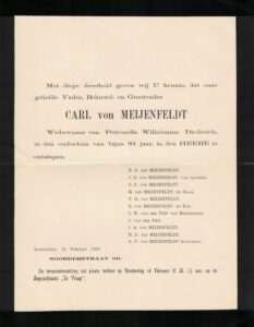 Daarmee eindigt het verhaal van de stamhouder, maar niet de naam Carl von Meijenfeldt, want zijn kinderen vernoemen vier kleinzoons naar hem.