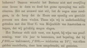 Al een jaar na zijn eervol ontslag krijgt Carl von Meijenfeldt een nieuwe betaalde baan. Tijdens de eerste landelijke bijeenkomst van de Vereniging voor Gereformeerd Schoolonderwijs op 28 april 1869 te Zwolle wil het bestuur hem aanstellen als Reizend Agent naast de al werkzame 25 vrijwillige lokale Agenten, meestal dominees, om geld in te zamelen voor nieuwe scholen. (1)