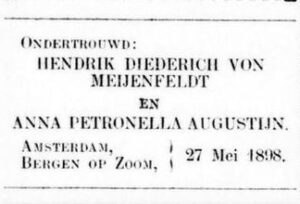 Hendrik ontmoet Anna Pieternella Augustijn, die in Amsterdam woont met haar broer Govert. Zij is 25 december 1867 in Bergen op Zoom geboren en dochter van Govert Johannes Augustijn (1836-1920) en Maria van Dijke (1839-1913). Het oude Bergsch geslacht Augustijn heeft sinds 1758 de pottenbakkerij “De Kat” in eigendom. In 1896 vraagt Anna haar ouders toestemming om zich met Hendrik te verloven en ontvangt van haar vader het volgende antwoord: