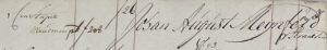 Het openbare document van de Admiraliteit van Amsterdam waarop de stamvader genoteerd staat is een betaalsrol. Eén van de bladzijden is helemaal gewijd aan Johan Aúgúst Meynfeld v Straalsond.