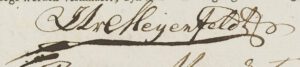 Van alle varianten wint de spelling Von Meijenfeldt het in de eerste jaren. In het eerst bekende door de stamvader zelf ondertekende geschrift bevestigt deze. (4)